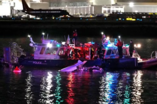 Equipes de resgate realizam buscas nesta quinta-feira (30) no Rio Potomac, em Washington, DC, após …